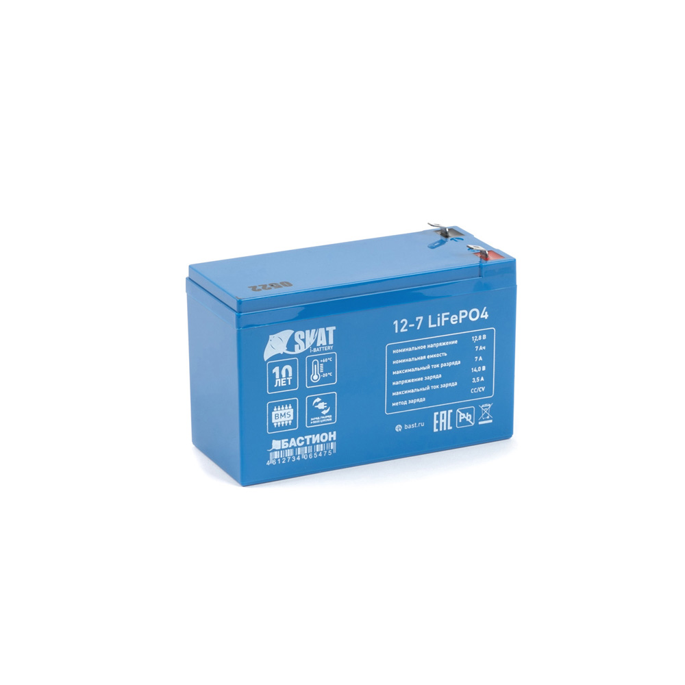 12 В, 7 Ач, тип клеммы — F1 нож, вес — 0.9 кг, температурный диапазон от -20°C до +60°C, элемент IFR 26650, структура 4S2P, срок службы — 10 лет, расширенная гарантия