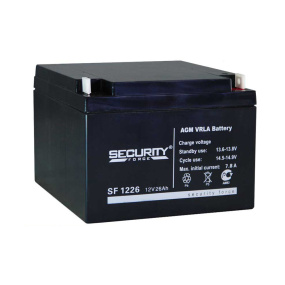 свинцово-кислотный, герметичный аккумулятор, 12В/26Ач, клеммы под болт с гайкой 6 мм, 165х175х125 мм, 7.95 кг