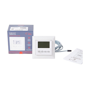 тип управления: электронный; способ монтажа: скрытый; минимальная температура 5 °C; максимальная температура 40 °C; максимальная нагрузка 3500 Вт; регулирование температуры теплого пола; регулирование температуры воздуха;