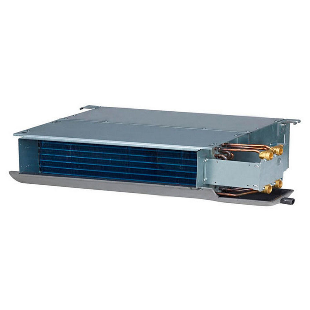 двухтрубный канальный фанкойл, охлаждение / обогрев, мощность в режиме охлаждения 4800 Вт / обогрева 7900 Вт, обслуживаемая площадь 48 кв. м, однофазный, расход воды 13.1 л/мин, уровень шума 34 дБ