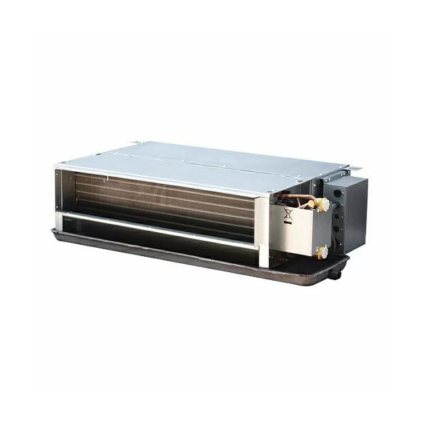 двухтрубный канальный фанкойл, охлаждение / обогрев, мощность в режиме охлаждения 5000 Вт / обогрева 8600 Вт, обслуживаемая площадь 50 кв. м, расход воды 14.3 л/мин, уровень шума 28 дБ