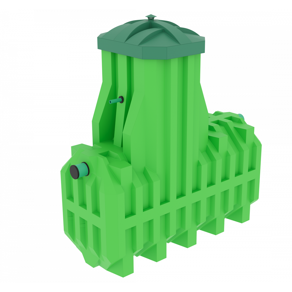 длина: 213 см, высота: 205 см, ширина: 79 см, производительность: 800 л/сутки, общий объем: 1 500л, тип: станция очистки, материал: LLDPE, число пользователей: 4, пиковый сброс: 200 л/час, энергопотребление 1,5 кВт/сут