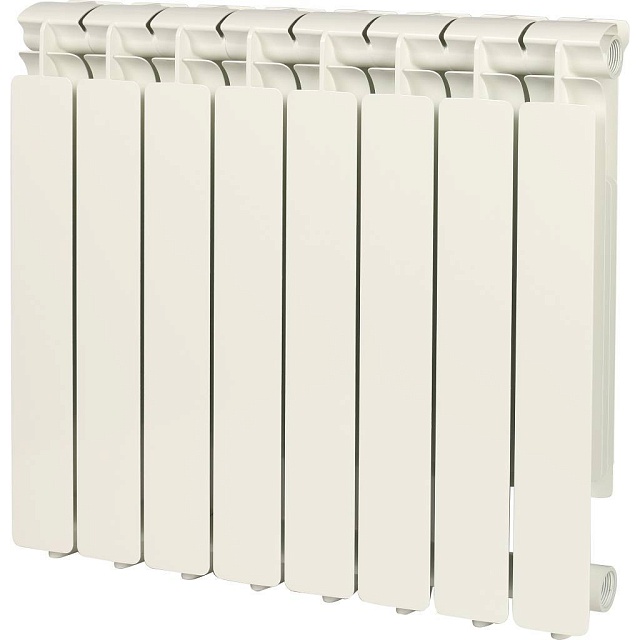 секционный, материал: алюминий, подключение: боковое, межосевое расстояние 50 см, число секций: 8, диаметр подключения: 1 дюйм, ширина одной секции 8 см, макс. рабочее давление 16 бар, глянцевое покрытие, макс. рабочая температура 110°C