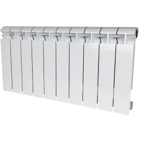 секционный, материал: биметаллические, подключение: боковое, межосевое расстояние 35 см, число секций: 10, диаметр подключения: 1 дюйм, ширина одной секции 8,4 см, макс. рабочее давление 25 бар, литье под давлением, глянцевое покрытие, макс. рабочая температура 110°C