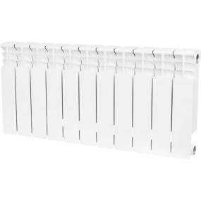 секционный, материал: биметаллические, подключение: боковое, межосевое расстояние 50 см, число секций: 11, диаметр подключения: 1 дюйм, ширина одной секции 8 см, макс. рабочее давление 20 бар, литье под давлением, глянцевое покрытие, макс. рабочая температура 135°C