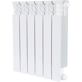 секционный, материал: биметаллические, подключение: нижнее правое, межосевое расстояние 50 см, число секций: 6, диаметр подключения: 1 дюйм, ширина одной секции 8 см, макс. рабочее давление 20 бар, литье под давлением, глянцевое покрытие, макс. рабочая температура 135°C