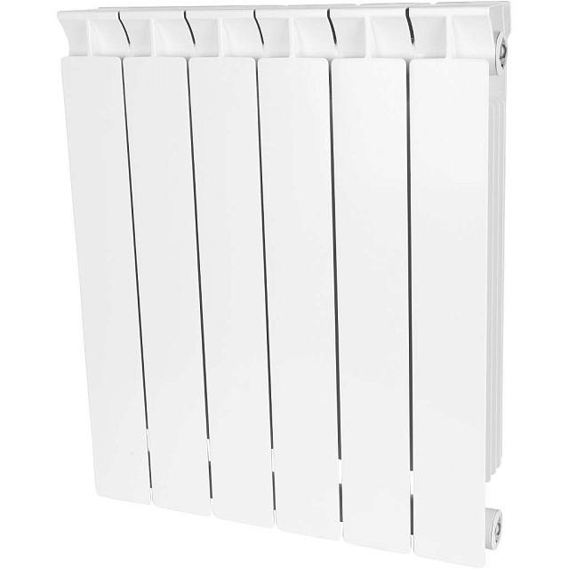 секционный, материал: биметаллические, подключение: боковое, межосевое расстояние 50 см, число секций: 6, диаметр подключения: 1 дюйм, ширина одной секции 8 см, макс. рабочее давление 35 бар, литье под давлением, глянцевое покрытие, макс. рабочая температура 110°C