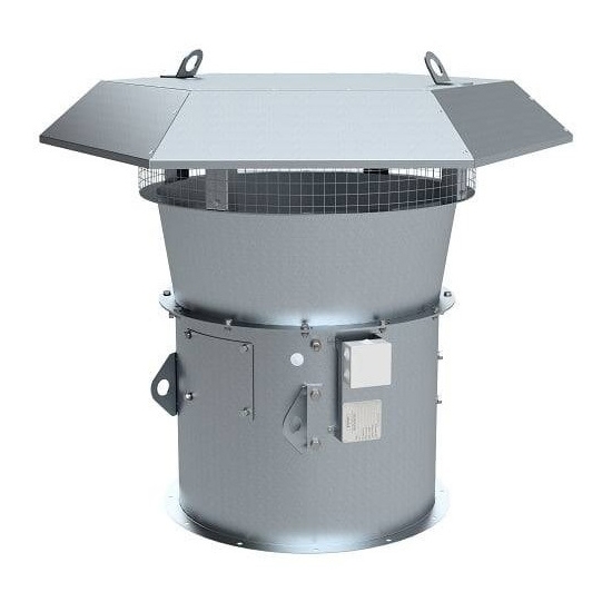крышный вентилятор, максимальный расход воздуха 130 000 куб. м/ч, максимальный располагаемый напор 850 Па, взрывозащищенный, присоединительный размер 1300х1300 мм, диаметр рабочего колеса: 1250 мм, материал корпуса: оцинкованная сталь, монтаж: горизонтальный, степень защиты: IP54