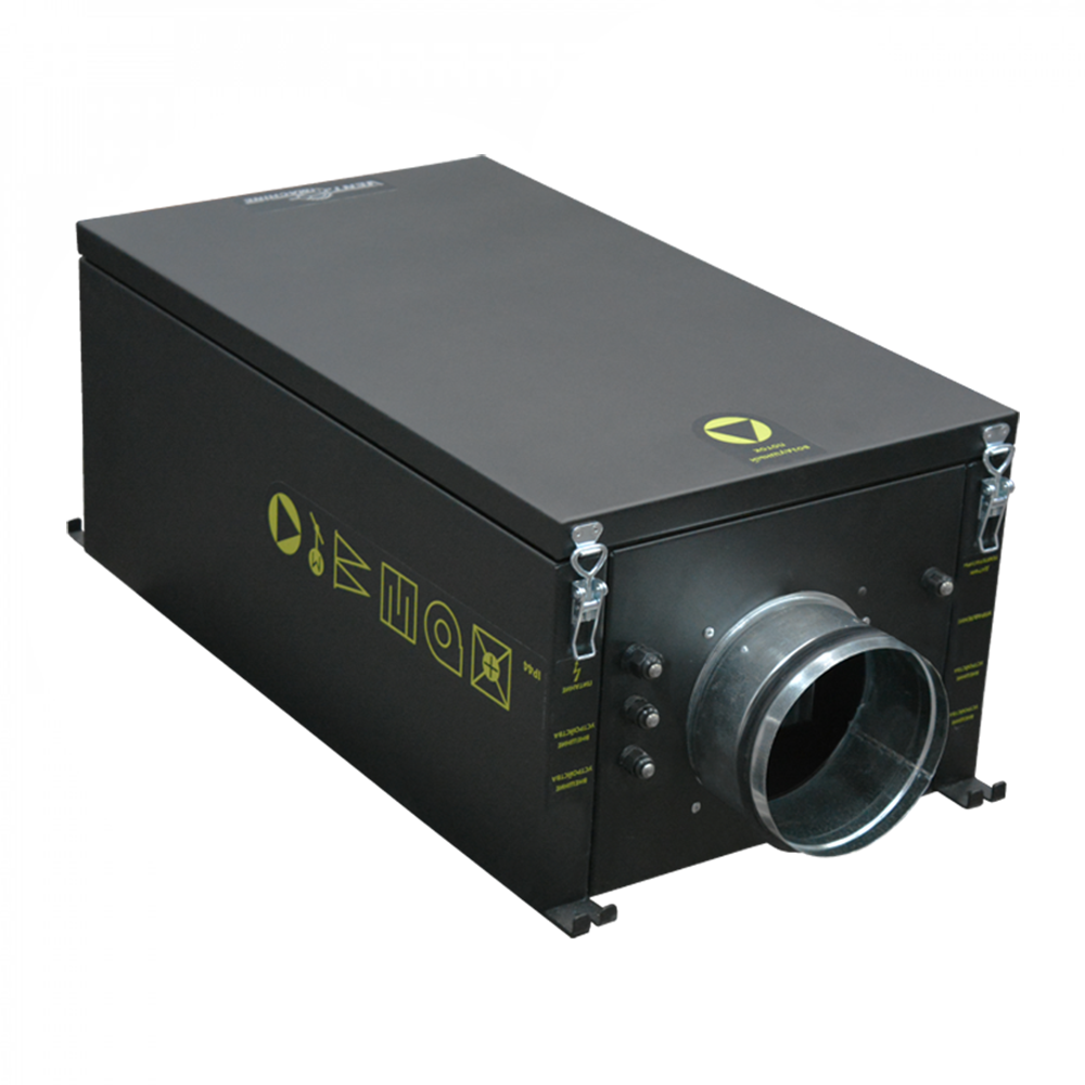 тип установки: приточная подключаемый воздуховод: круглый, максимальный воздухообмен: 500 м³/час, диаметр канала: 160 мм, потребляемая мощность: 4.11, напряжение: 380 В