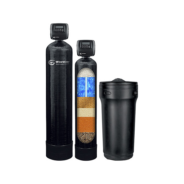Комплексная система WiseWater используется на предприятиях общественного питания и торговли, в частных домах и коттеджах для очистки воды от сероводорода, железа, марганца, солей жесткости, мутности, цветности и механических примесей. Система работает на эксклюзивных клапанах управления Clack RI (США), благодаря использованию современных технологий и материалов, а также безупречному качеству сборки, эти русифицированные блоки управления являются гарантом безупречной работы фильтров. Корпуса фильтров, соляных фидеров и все контактирующие с водой элементы управления выполнены из полимерных материалов пищевого класса. Для приготовления регенерационного раствора рекомендуется использовать таблетированную поваренную соль, производимую специально для этой цели. Комплектация: безреагентный фильтр-обезжелезиватель с воздушной подушкой, фильтр-умягчитель с датчиком расхода, бак для соли, латунный грязевой фильтр, регулятор жёсткости воды (для умягчителя), манометры, фильтрующие материалы, термочехлы для предотвращения образования конденсата на стенках фильтров.