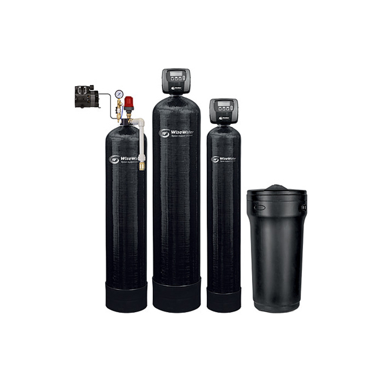 Комплексная система WiseWater используется на предприятиях общественного питания и торговли, в частных домах и коттеджах для очистки воды от сероводорода, железа, марганца, солей жесткости и механических примесей, а также насыщения обрабатываемой воды кислородом. Система работает на эксклюзивных клапанах управления Clack EW (США), благодаря использованию современных технологий и материалов, а также безупречному качеству сборки, эти блоки управления являются гарантом безупречной работы фильтров. Корпуса фильтров, соляных фидеров и все контактирующие с водой элементы управления выполнены из полимерных материалов пищевого класса. Для приготовления регенерационного раствора рекомендуется использовать гранулированную или таблетированную поваренную соль. Комплектация: аэрационная колонна с малошумным автоматическим компрессором, безреагентный фильтр-обезжелезиватель, фильтр-умягчитель с датчиком расхода, бак для соли, латунный грязевой фильтр, регулятор жёсткости воды (для умягчителя), манометры, фильтрующие материалы, термочехлы для предотвращения образования конденсата на стенках фильтров.