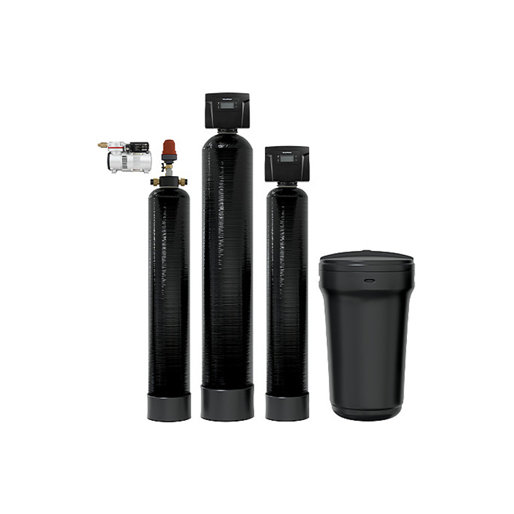 Особенности и преимущества: 9 стадий промывки с возможностью изменения их продолжительности и последовательности, поршневой механизм клапана; аэрационная колонна: насыщение обрабатываемой воды кислородом с помощью воздушного компрессора, предварительное окисление железа и органических соединений, удаление агрессивной углекислоты и сероводорода (удаление неприятного запаха), препятствует развитию микроорганизмов на загрузке фильтров, позволяет избежать потерь давления при прохождении воды через аэратор; фильтр-обезжелезиватель: удаляет растворённое и нерастворённое в воде железо с помощью процесса окисления, задерживая выпавшее в осадок железо в толще наполнителя, а также снижает мутность воды, наполнитель IronX является катализатором реакции окисления соединений железа растворенным в воде кислородом, регенерация фильтра не требует использования реагентных материалов и производится в автоматическом режиме с помощью электронного управляющего клапана по сигналу таймера; фильтр-умягчитель с катионообменной смолой: предназначен для снижения содержания в воде ионов кальция и магния до рекомендуемого уровня 1,5-2,5 мг-экв/л., регенерация фильтра производится в автоматическом режиме с помощью электронного управляющего клапана по сигналу таймера или встроенного счётчика, автоматический расчёт фильтроцикла, идикация низкого уровня соли, разъем для подключения штатного внешнего клапана (NHWB, MAV), функция двойной обратной промывки для большей эффективности, возможность как прямоточной, так и противоточной регенерации.